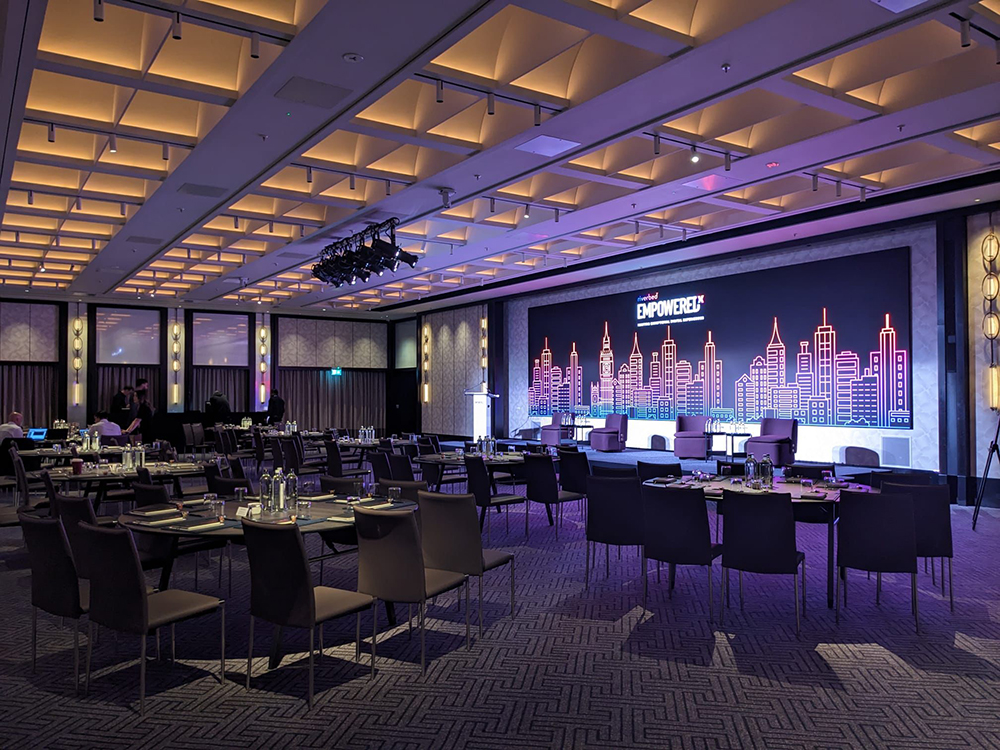 As with many events such as these, the agenda was ever-changing and so whilst that meant it was a moving feat for the AV team, the space allowed a degree of flexibility about how it was used. The final schedule did not end up including breakout sessions, however we were able to use one of the rooms for a last-minute VIP lunch with the new CEO.