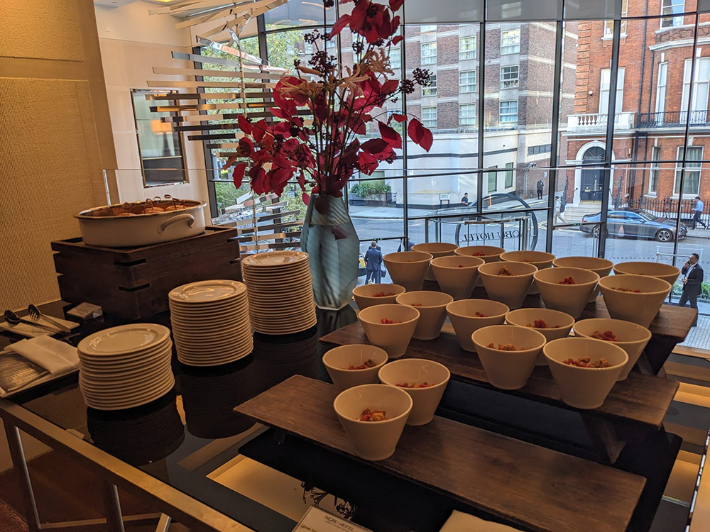 The Nobu Hotel London Portman Square was the perfect place for this event as the numbers meant we had the majority of their event space, enabling our client to feel a certain sense of exclusivity, combined with the 5 star excellence that Nobu is known for. The foyer and registration area are on a mezzanine overlooking the hotel lobby which is a bright and modern space, and enables easy access into the main room. There are also some quiet nooks if delegates needed to take a call or do some emails. The venue provided exceptional food and service, and all feedback was positive throughout the day.