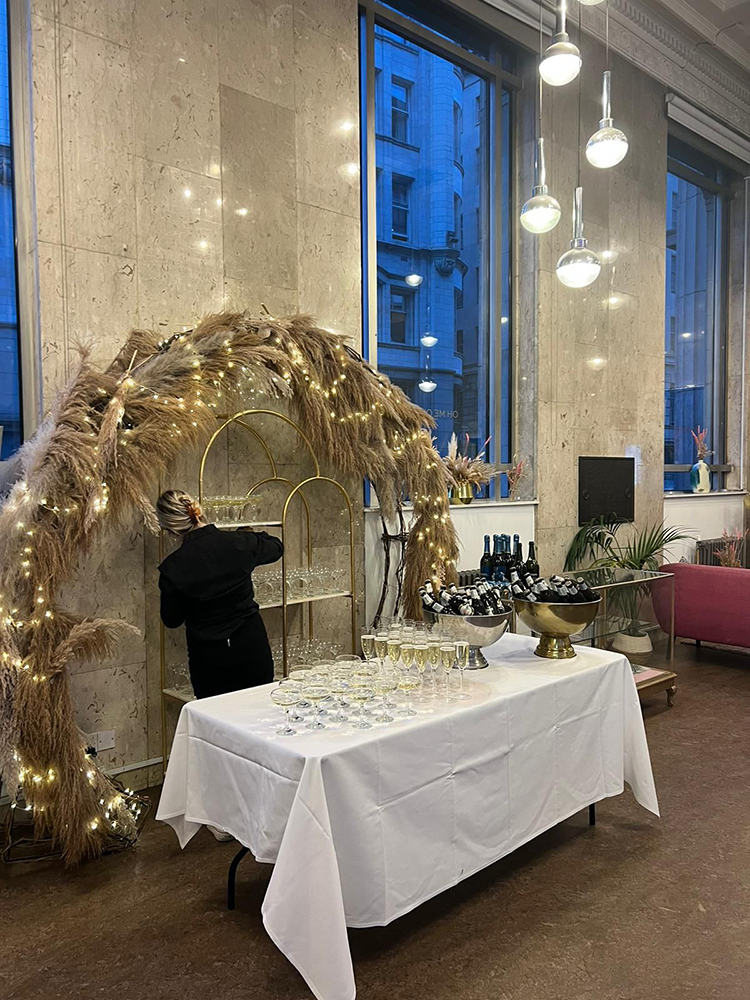 The chosen venue for the event was Oh Me Oh My, a beautiful former bank located in the heart of Liverpool and a short distance from the River Mersey. Before finalising the venue, a site visit was conducted by our production and AV supplier to ensure that the space would be suitable and to identify any potential issues that may arise. As the client was unable to attend the site visit due to travel restrictions, we took pictures and videos of the venue to provide her with a virtual tour of the space. The stunning roof garden was an added benefit of using this space and was an option for pre-dinner drinks.