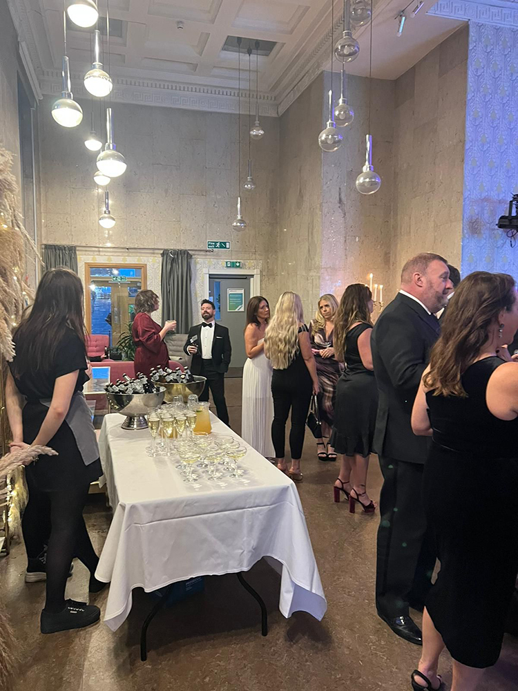We managed the entire event from start to finish, including handling communication with guests. On the night, we operated a meet and greet registration desk where attendees received their badges, were given their table number, and then directed toward drinks and canapes. During the reception, we displayed a loop of photos from past events on a big screen, which got people reminiscing and set the tone of celebration for the evening. A photo booth, complete with Liverpudlian ‘props’, got people excited and added some fun. A photographer took both informal photos throughout the reception as well as staged formal prints of the award winners later in the evening.